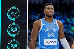 超级怪兽变态输出!字母哥欧锦赛场均轰下27.7+9.7+5 命中率近7成