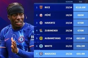 体育资讯7月19日讯 德国转会市场统计表明,马杜埃凯是阿森纳队史第7贵的引援,同时也是切尔西队史第6贵的转出球员。